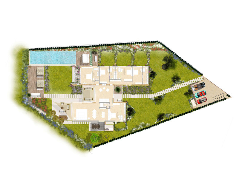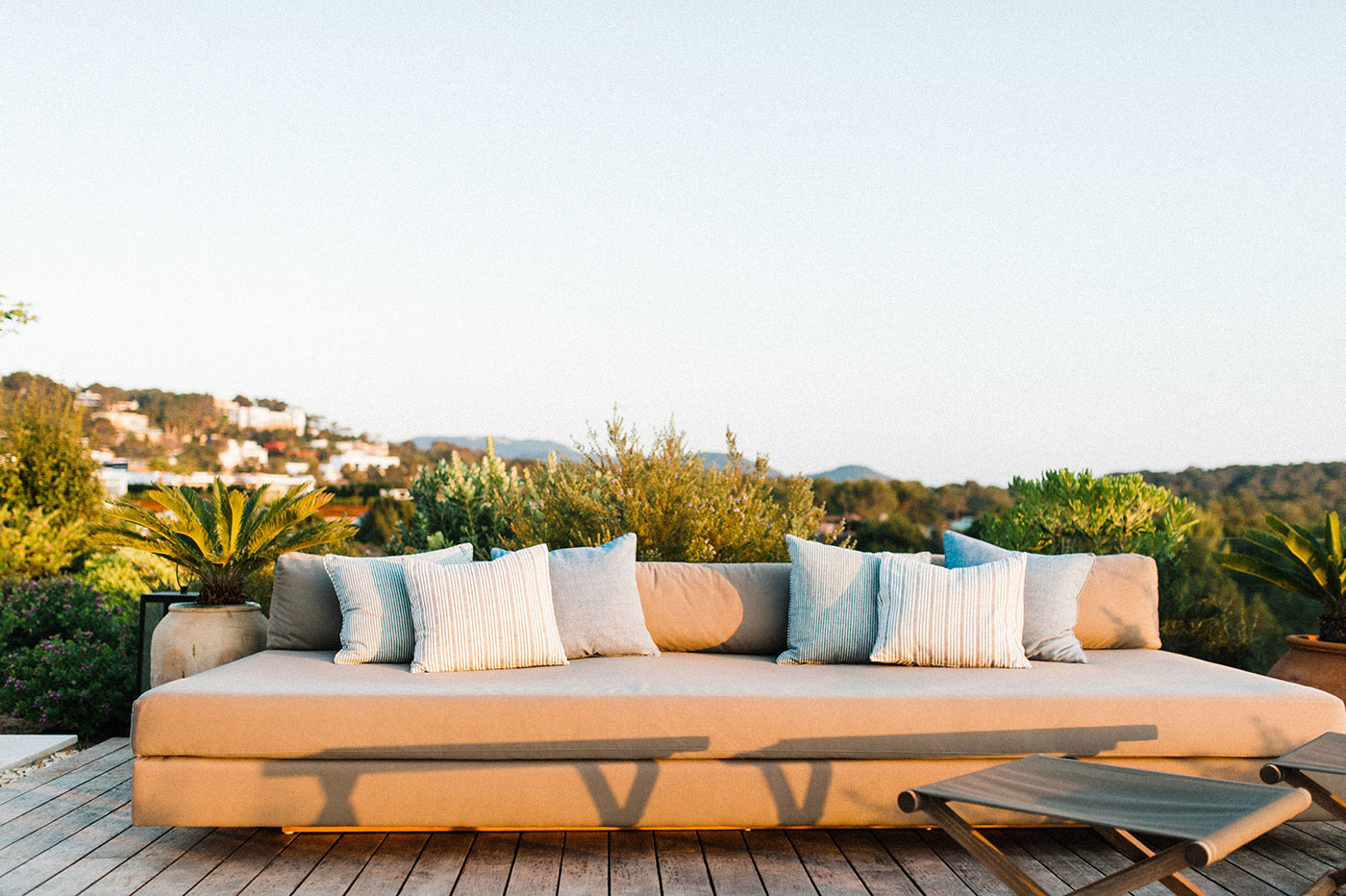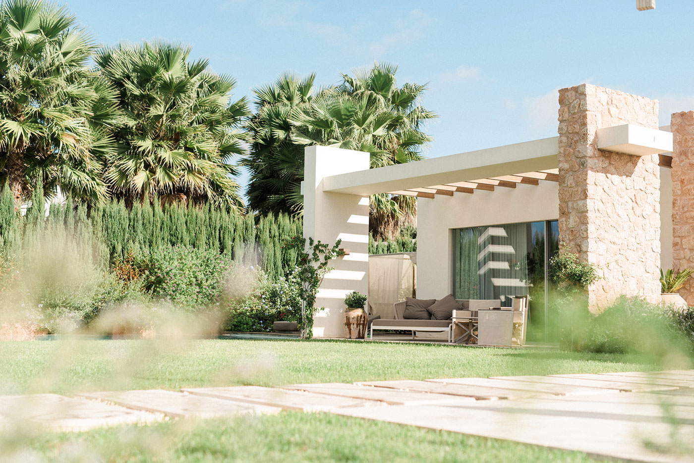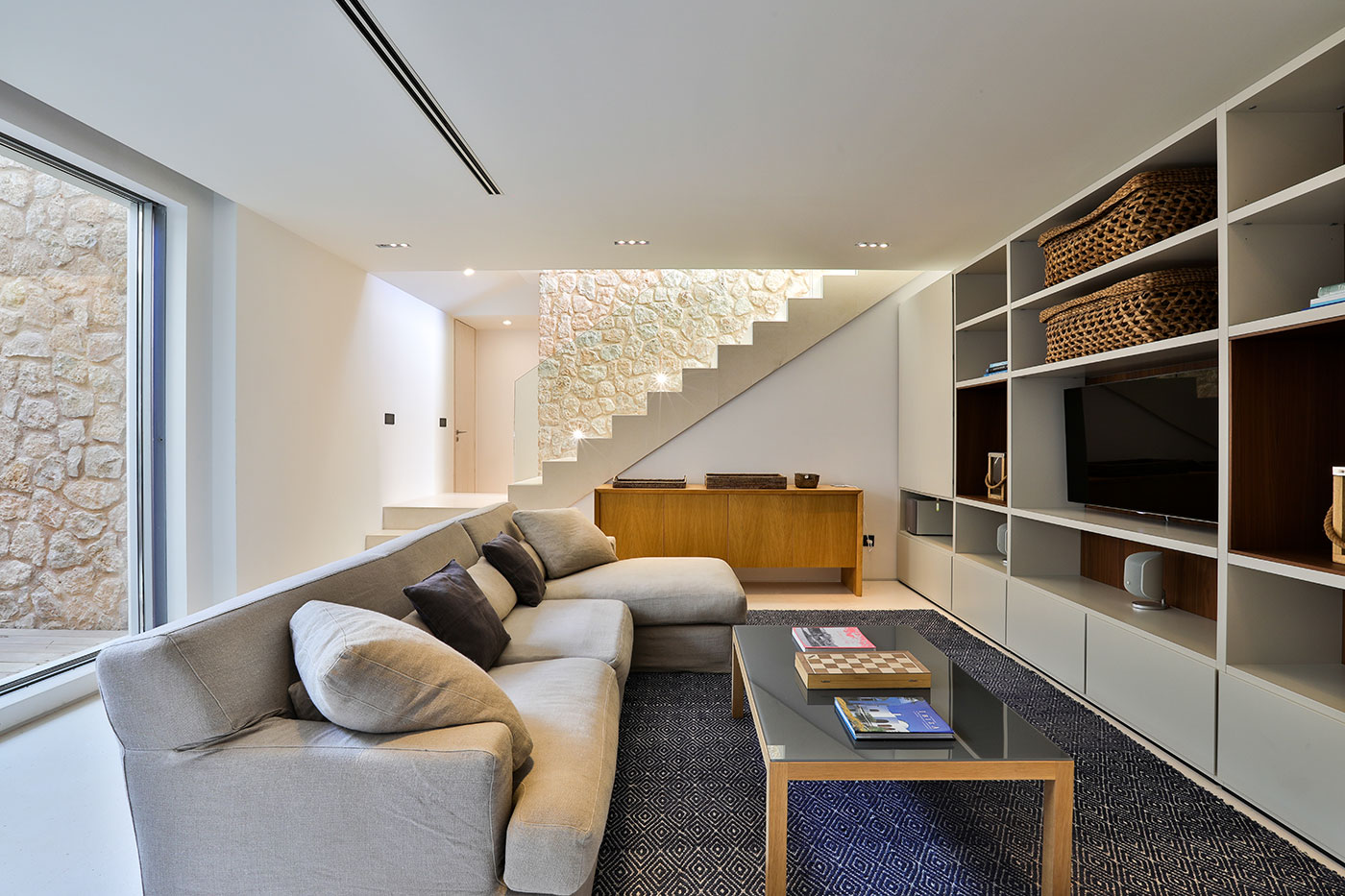 Can Dos Rocas accommodates ten adults in five spacious bedrooms with ensuite bathrooms and two children in one additional room, also with ensuite. Pure luxury blended with cutting edge technology, this architectural gem was recently built in 33 Calaconta, the most exclusive development in the Balearics, gated with 24 hours security, 12 mt Motor Yacht, four sea view shaded terraces, outside dining, swimming pool, barbecue area and direct access to a 300 sq m SPA and Gym. From the house there is a magnificent sea view and the villa is excellently sited to present a sweeping panorama that includes the islands of S’illa des Bosc and Conejera, as well as the famous Balearic sunset.